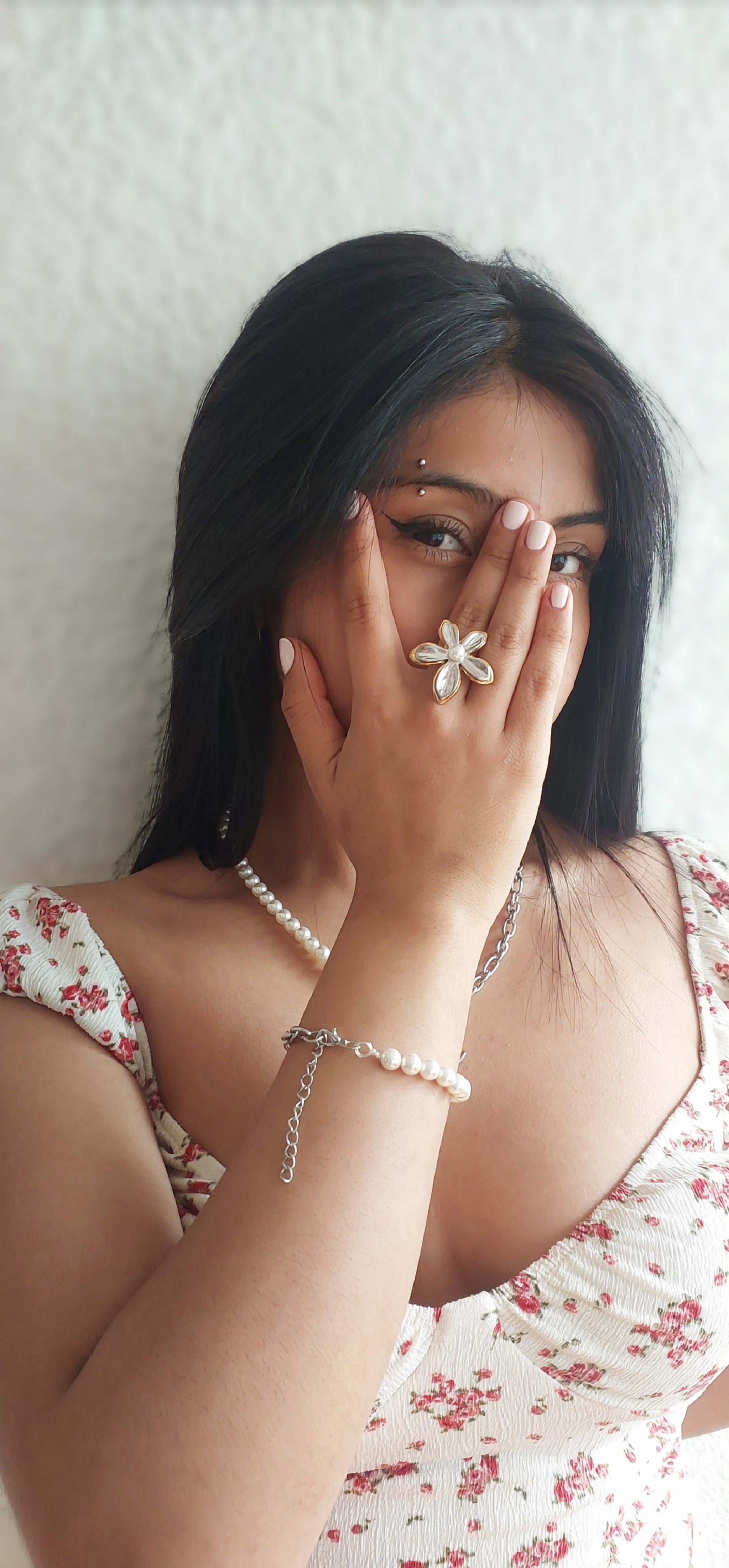 Hermoso anillo en acero inoxidable con baño en oro, en color dorado y plateado, con perla en el centro. Ideal para elevar tus outfits.