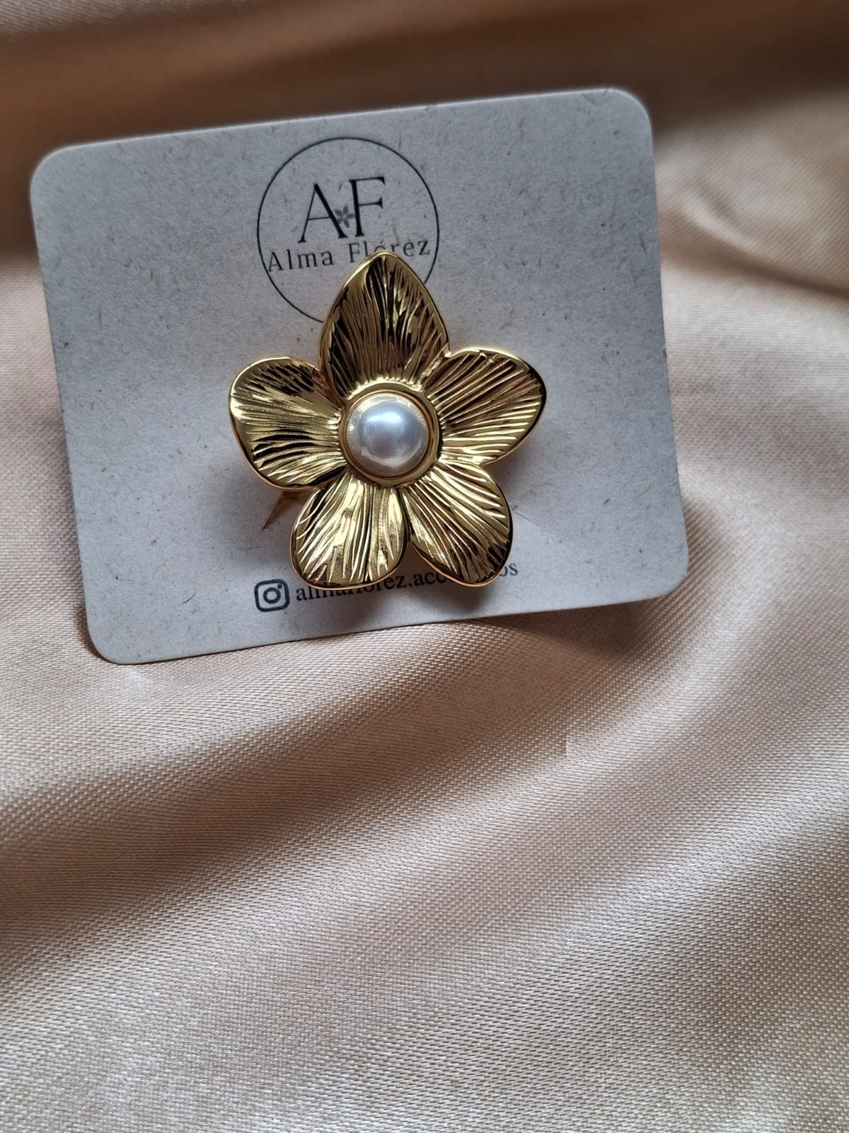 Hermoso anillo en acero inoxidable bañado en oro, con perla en el centro